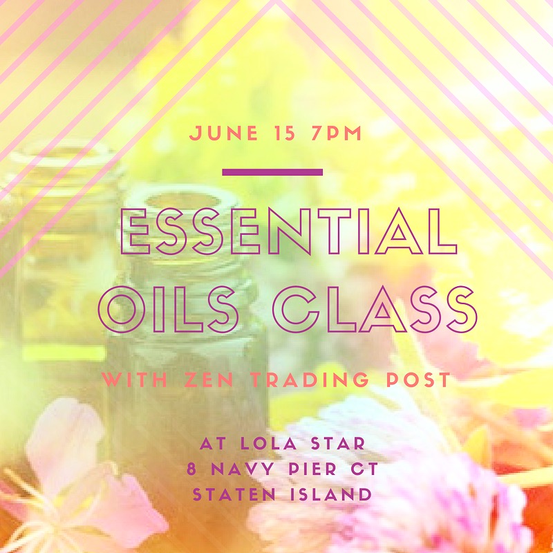 Interested in aroma therapy and how natural oils can help you in daily life? Join us for an intro to Essential Oils class held by Carol and Anthony, owners of Zen Trading Post. Learn about diffrent oils, different uses for them and walk out of class with your own blend. Meet at Lola Star Boutique 10-15mins before the class to sign in. Hope to see you there!
